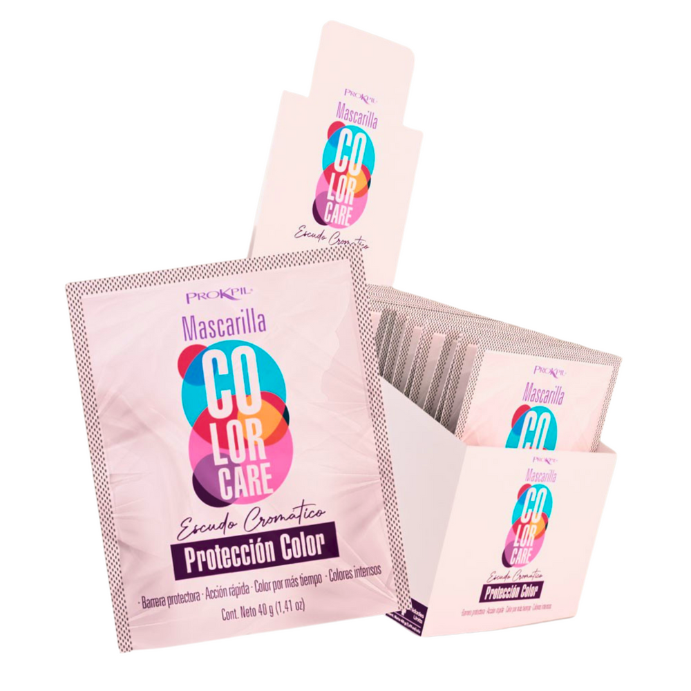 La Mascarilla Color Care Escudo Cromático de Prokpil está diseñada para proteger y prolongar la intensidad del color en cabellos teñidos, al mismo tiempo que brinda hidratación profunda y nutrición intensa. Su fórmula avanzada forma una película protectorasobre la fibra capilar, creando un escudo cromático duradero que evita el desgaste y mantiene los colores vibrantes y verdaderos por más tiempo. Gracias a su acción rápida, proporciona resultados visibles en pocos minutos, dejando el cabello suave, brillante y lleno de vida.
