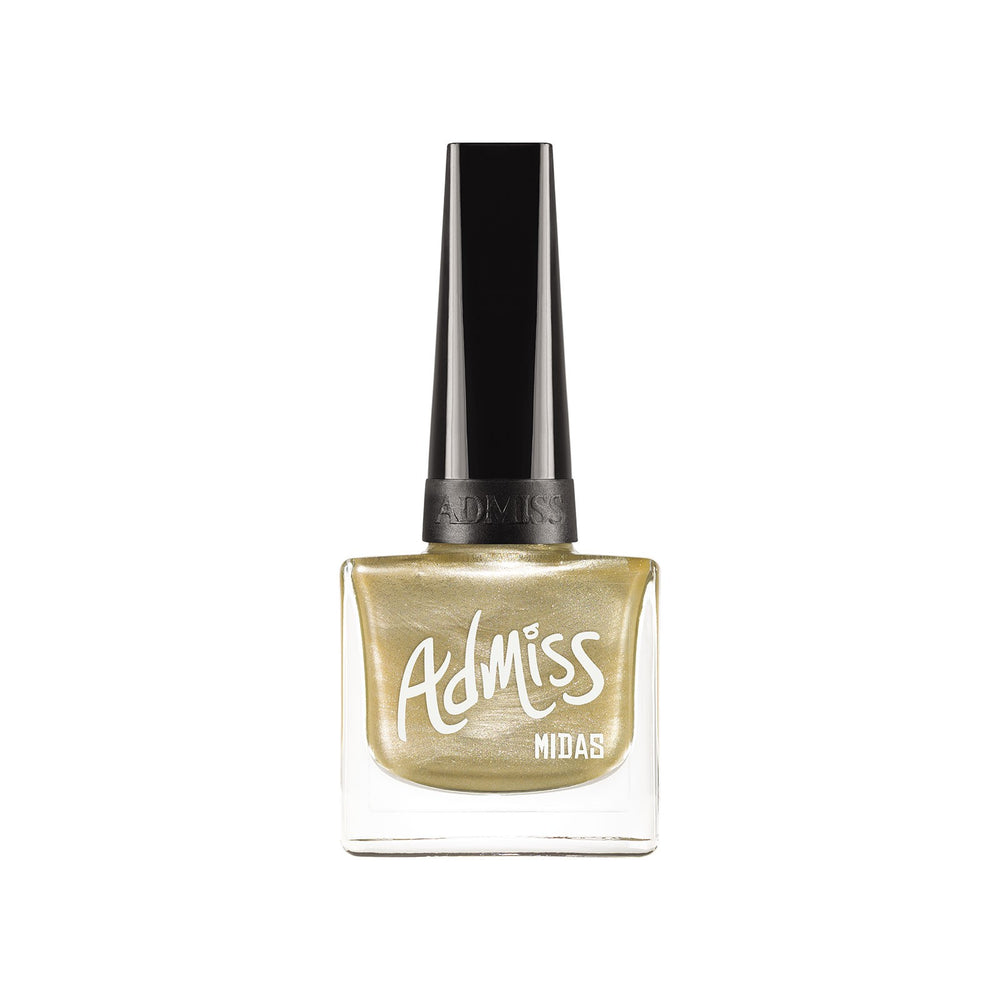El Esmalte Metalizado de Admiss de uñas otorga color y brillo hasta por 5 días, con brocha plana y redondeada para fácil aplicación y formulación 5 Free.
