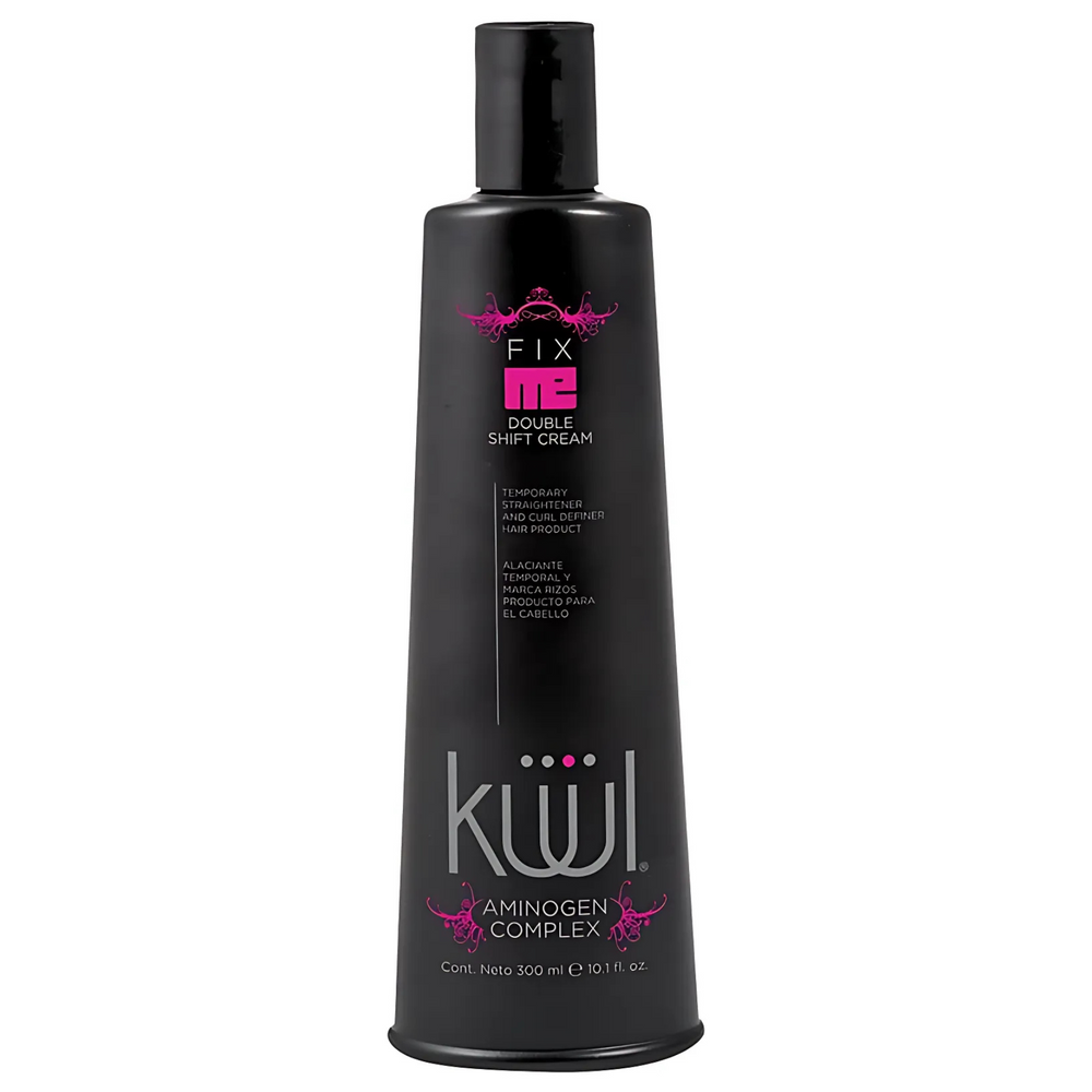 La Küül Fix Me Double Shift Cream es una crema de peinar de doble función diseñada para crear tanto rizos definidos y con movimiento como un alisado temporal con acabado natural y duradero. Su fórmula avanzada humecta el cabello en profundidad, lo protege contra el daño térmico y combate el frizz.