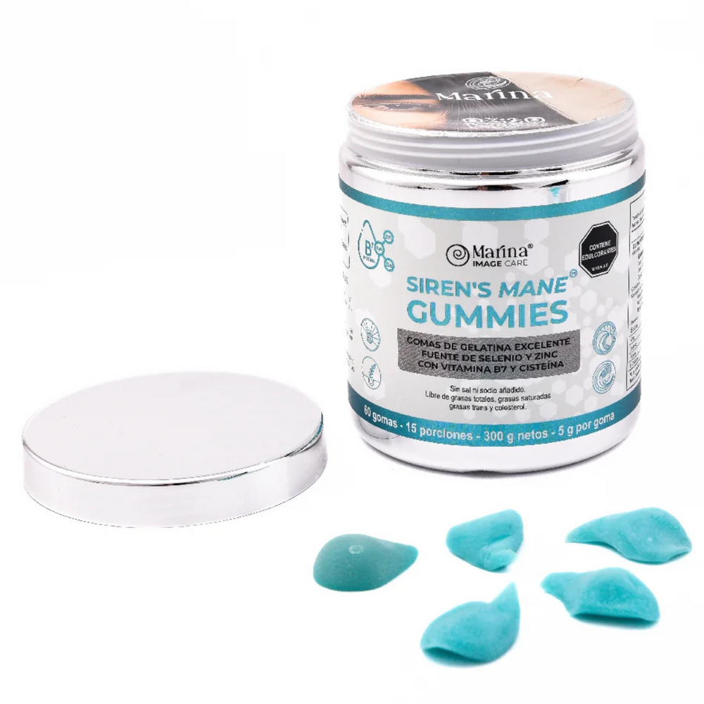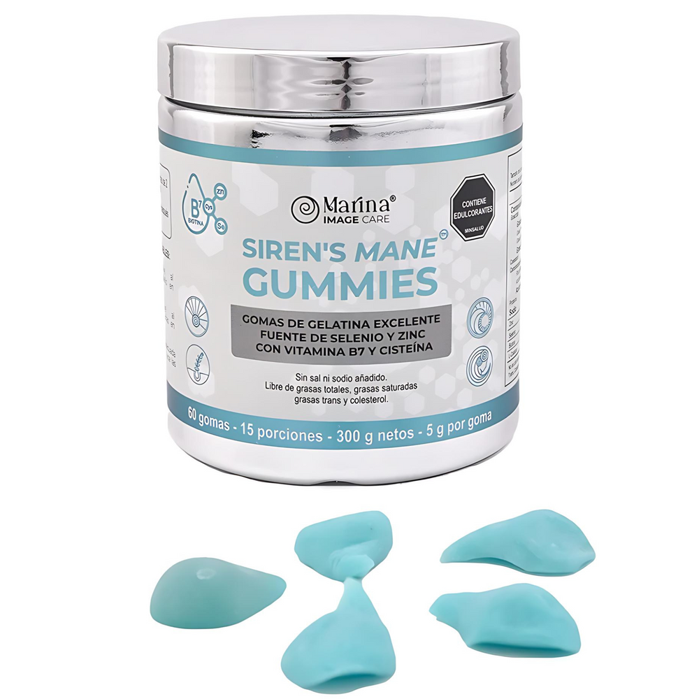 Las Gomas crecimiento cabello, cejas y pestañas Sirenes Mane de Marina Image Care son un suplemento innovador diseñado especialmente para mujeres que buscan fortalecer su cabello, cejas y pestañas desde adentro hacia afuera. Su fórmula avanzada contiene biotina, zinc y selenio, tres ingredientes esenciales que trabajan en sinergia para estimular el crecimiento capilar, mejorar la densidad del cabello y prevenir su caída.