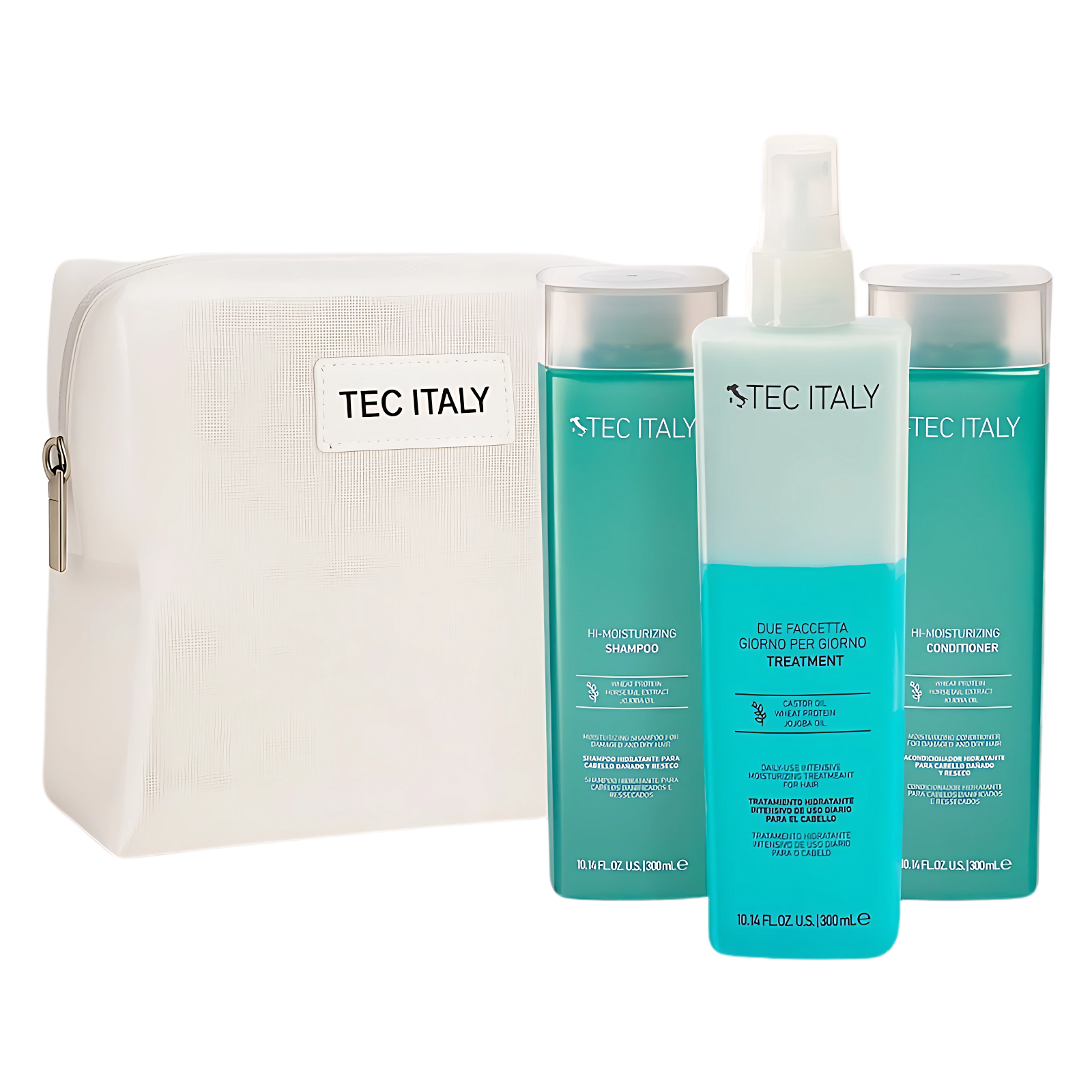 Adquiere este Kit Moisture Cabello Reseco Shampoo - Acondicionador Hi-Moisturizing y Due Faccetta Treatment Tec Italy:
