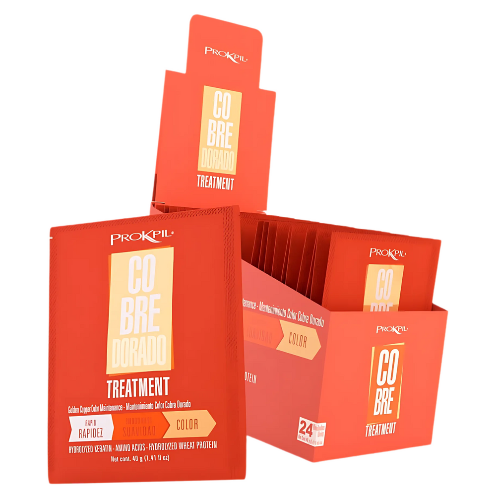 El Maintenance Tratamiento Cobre Dorado de Prokpil es un producto diseñado para mantener el color del cabello teñido, evitando que aparezcan los tonos de desgaste, que se generan por los lavados o exposición al ambiente prolongando el color de cabello teñido. Este tratamiento está formulado con ingredientes de alta calidad y cuenta con una fórmula suave y sin sulfatos, lo que lo hace ideal para cabellos sensibles y dañados.