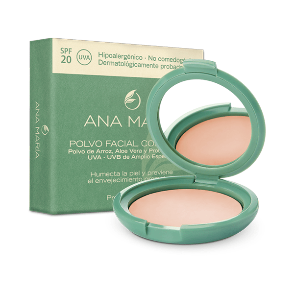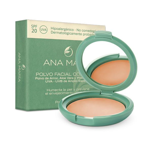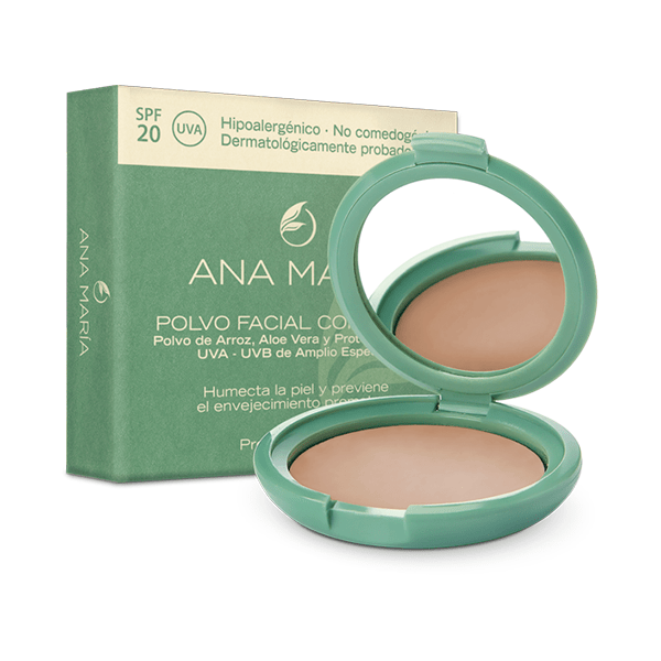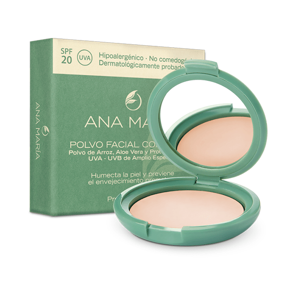 Polvo Facial Compacto con Polvo de Arroz, Aloe Vera y Filtro Solar Ana María