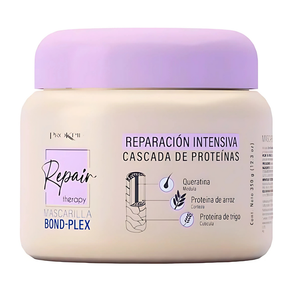 La Mascarilla Repair Therapy Bond-Plex de Prokpil es la solución definitiva para cabellos secos, maltratados o con daños extremoscausados por procesos químicos como tinturas, decoloraciones, alisados, así como por daños mecánicos, abrasión o exposición a condiciones ambientales extremas. Esta mascarilla brinda una reparación profunda e intensiva al actuar sobre las tres capas de la fibra capilar: cutícula, corteza y médula. Funciona como un reconstructor de enlaces, restaurando la estructura interna del cabello mientras hidrata y fortalece, logrando un cabello nutrido, saludable y brillante.