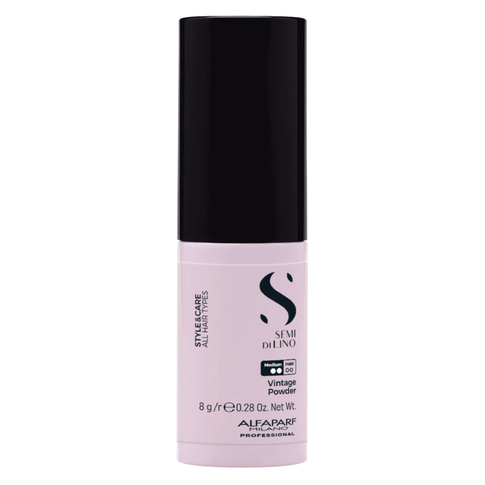 El Vintage Powder de la línea Semi di Lino Style & Care de Alfaparf Milano es un polvo texturizante profesional que crea volumen, cuerpo y un acabado con estilo vintage moderno. Su fórmula en polvo ligera aporta textura, separación y agarre sin dejar residuos visibles, ideal para peinados con cuerpo, efecto despeinado controlado o estilos definidos con cuerpo y movimiento natural.