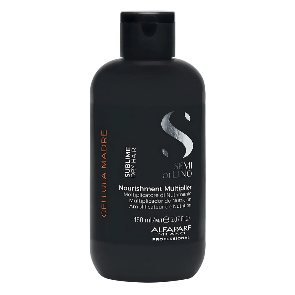 El Semi Di Lino Sublime Cellula Madre Nourishment Multiplier/Multiplicador de Nutrición de Alfaparf Milano es fluido que ayuda a una rápida nutrición e hidratación del cabello a través de un complejo vitamínico, nutri-azúcares, médula de bambú y córtex repair, además, de las células madre de Árgan, que dan una belleza sin igual a tu pelo.