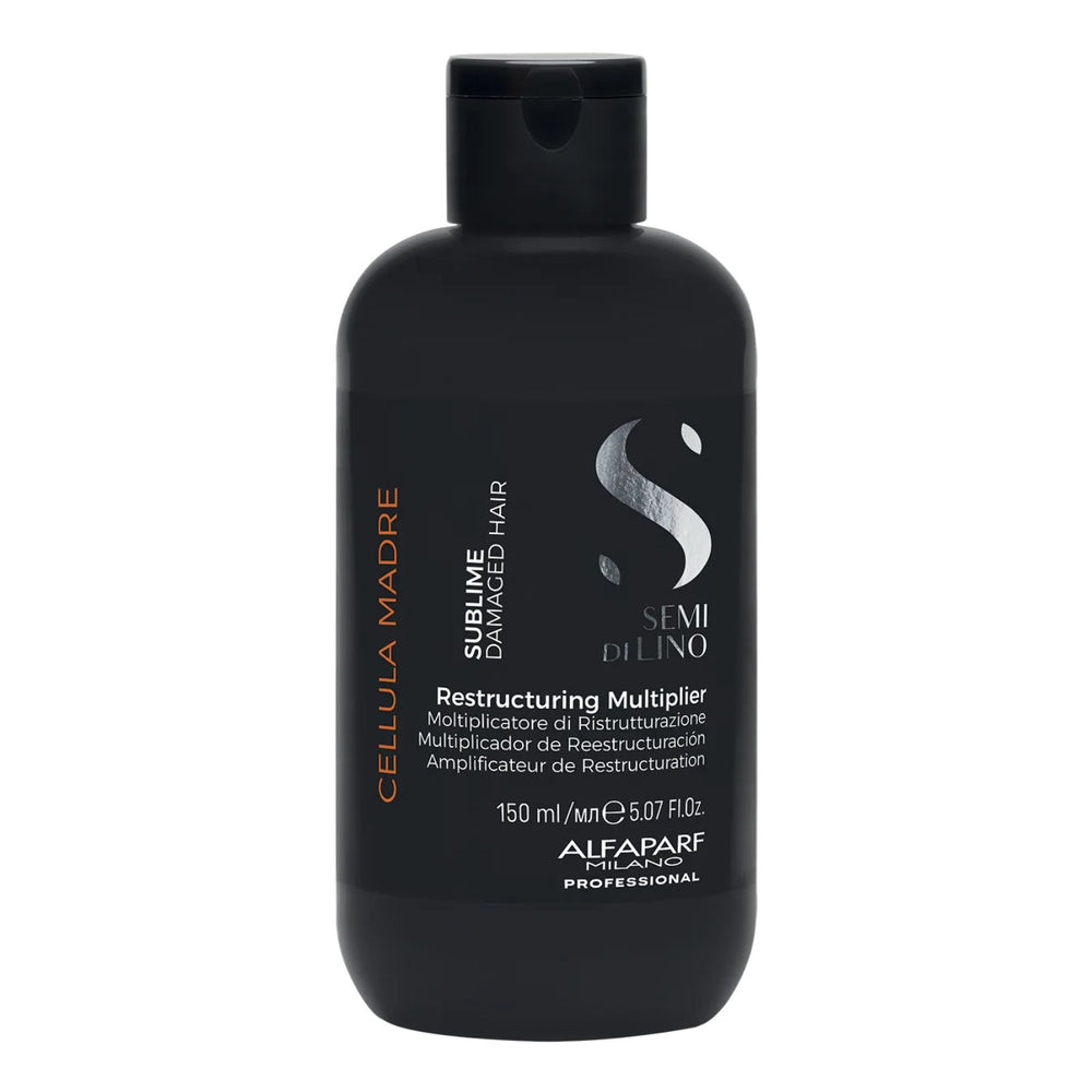 El Semi Di Lino Sublime Cellula Madre Restructuring Multiplier/Multiplicador de Reestructuración de Alfaparf Milano es una emulsión ultraeficaz que repara el cabello, incrementando la elasticidad y la fuerza, sin apelmazar. Contiene Shine e Color Fix Complex para aportar luminosidad y protección del color.