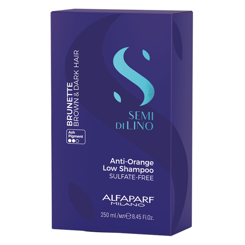 El Semi Di Lino Brunette Anti-Orange Shampoo Cabello Castaño de Alfaparf Milano para cabellos delicados, limpia delicadamente, neutraliza los reflejos anaranjados no deseados, aporta una nutrición profunda y revitaliza la fibra capilar.