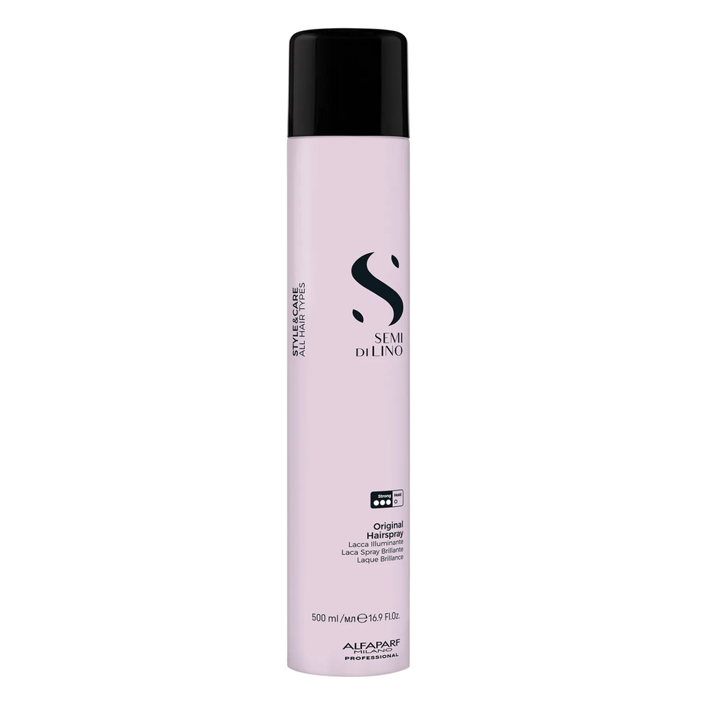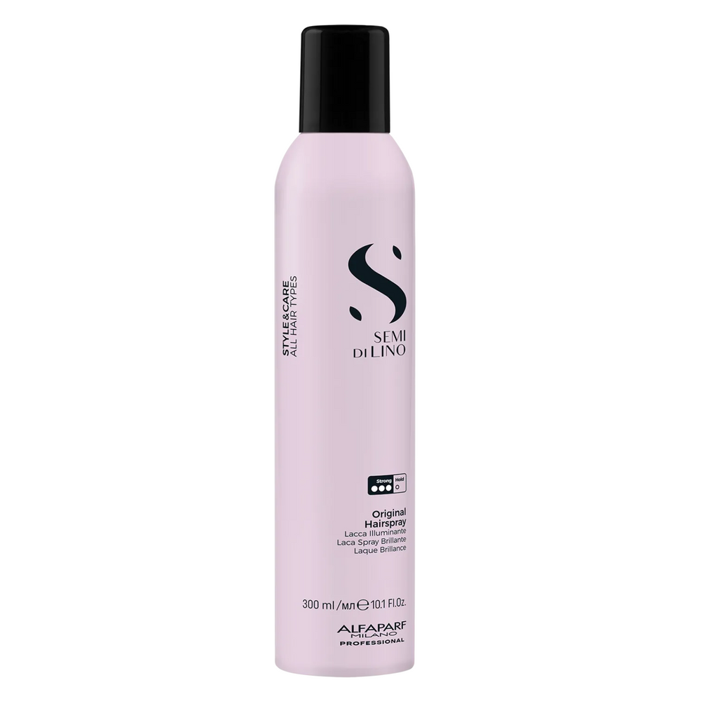 La laca en spray Semi Di Lino Original Hairspray de Alfaparf Milano ofrece fijación fuerte sin apelmazar, respetando el movimiento natural del cabello y aportando un brillo espectacular. Ideal para finalizar tu peinado, controlar el frizz y proteger tu cabello con un acabado profesional y duradero.